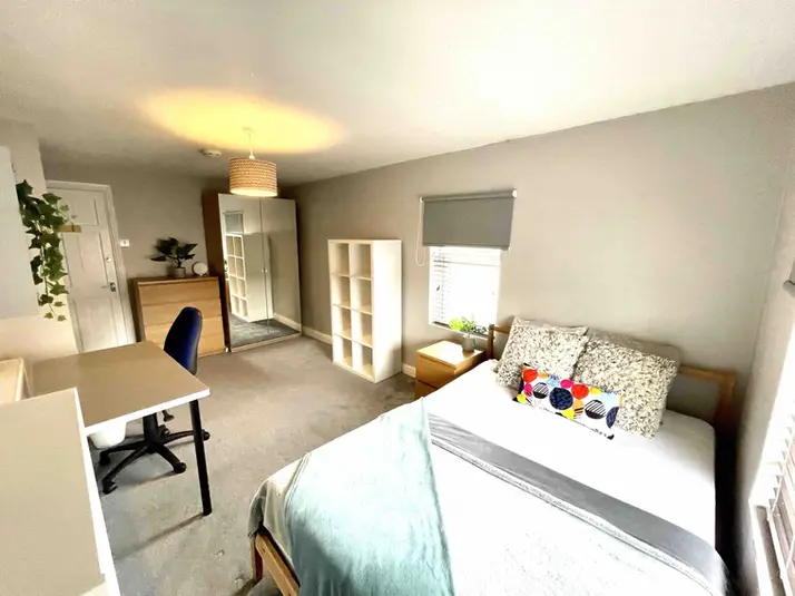 All four bedrooms are generously sized and thoughtfully furnished. Each room includes a comfortable double bed, large desk space for studying or gaming, ample storage including wardrobes and shelving, and plenty of natural light. The neutral décor creates a calm and practical environment, ideal for both work and relaxation.